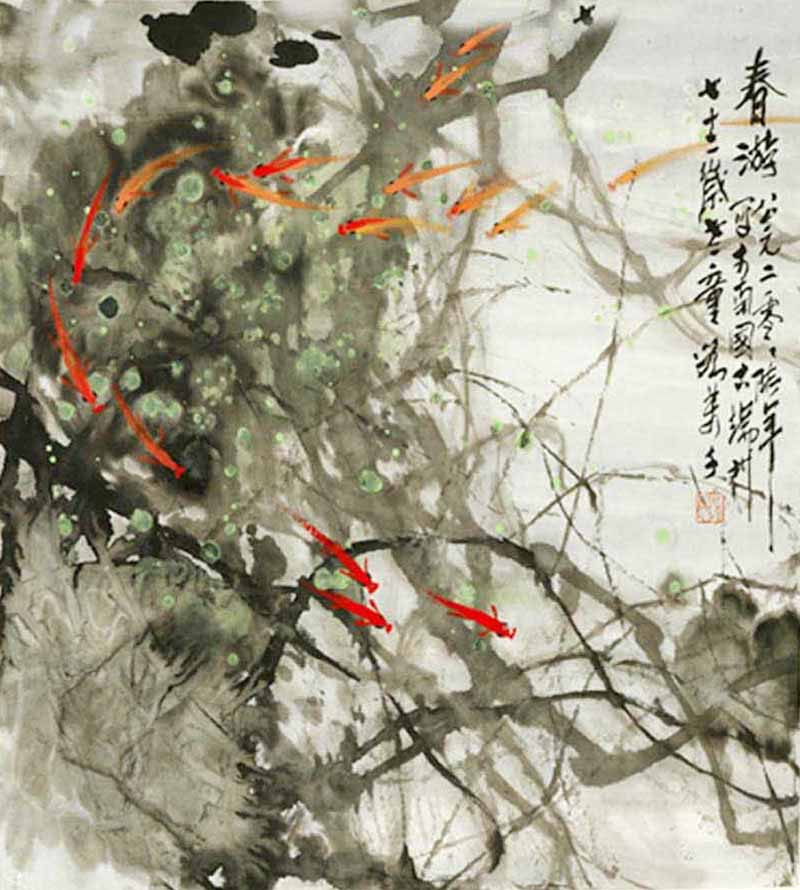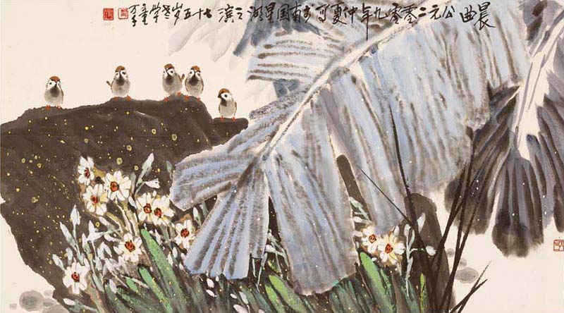 刘万千,原名刘宏达,号愚老,称“老学童”。1934年生于广东陆丰县。毕业于广州市教育学院图画科,结业于广州美术学院中国画系。曾师承黎雄才、杨之光、潘鹤等岭南诸多名家,后又在创作活动中有幸结识了林墉、苏华、林丰俗、方楚雄等一批良师益友、集众长自成一家。
