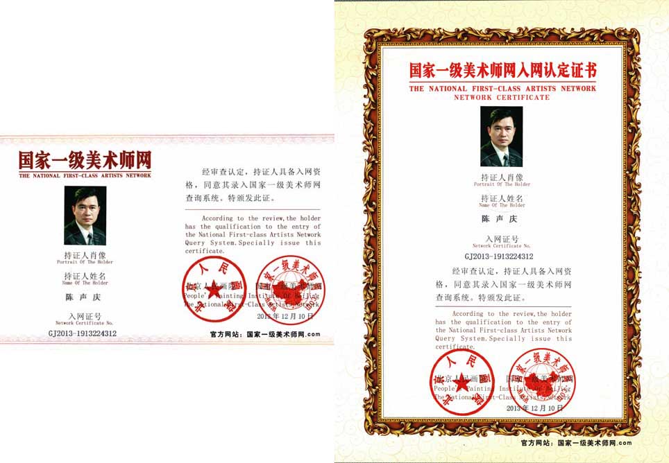 陈声庆,字楚声,号半笔、竹林山人、竹林隐士。生于“大跃进”末年,现任:中国美术家协会、中国书画研究院、中国工艺美术家协会、北京人民画院院士、理事、会员等。在“文革”中念完高中,一九七八年参军,在北京工作十年,一九八七年回归故里,32岁被授予少校军衔。一九九三年九月结束16年绿色之梦转业到地方。在京城工作生活的十年中,对他的书法艺术影响很大,经常步入北京艺术殿堂,遍访京城名流,加之刻苦习练,形成书道个性,数次在国内外获奖。