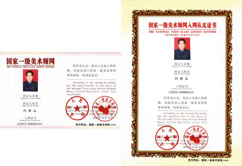 闫树志,笔名鲁野,字竞成,号春德堂主人,1961年生,山东临淄人,现为中国书画协会理事、研究员。世界书画华北协会理事、研究员。自幼喜欢书法绘画。作品入编《中国现代书画作品集》、《国际书画家大辞典》、《世界华人文学艺术界名人录》、《中华书画家大典》。曾被特邀为代表到北京参加中国艺术研究院共和国社会主义文学艺术50年研讨会。被授予“中国东方书画艺术终身成就奖”,“国际孔子文化艺术奖”等荣誉称号。被认定为:特级书画师。先后出版了《鲁野书画精品集》、《闫树志硬笔书法集》、《硬笔楷书入门》、《硬笔楷书基础练习》、《闫树志书画艺术》等书。书画作品润格2200元/平方尺。