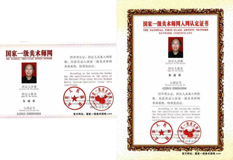 朱建荣,别名克愚,号悟斋布衣,画室名《悟斋》。1940年7月生,浙江省德清县人。少儿时喜习画。1958年考入浙江美术学院(现为中国美术学院)。毕业后分配事于舞台美术。“文革”后调任美术教育及艺术类高考培训工作,期间进行创作和探索研究。曾担任河北省少儿美术教育研究会理事。作品曾多次在杂志和《美术报》上刊登,曾获省市美展一、二等奖、园丁奖;先后在全国(或国际性)美术展览中十五次获金奖及特等奖、金牌奖杯,作品皆入编精品集,并被收藏家和单位收藏;2009年,传略和作品编入《中国书画家志》,特授予“新中国书画名家”;2011年被中国国学研究会等授予“中国当代国学名家”。