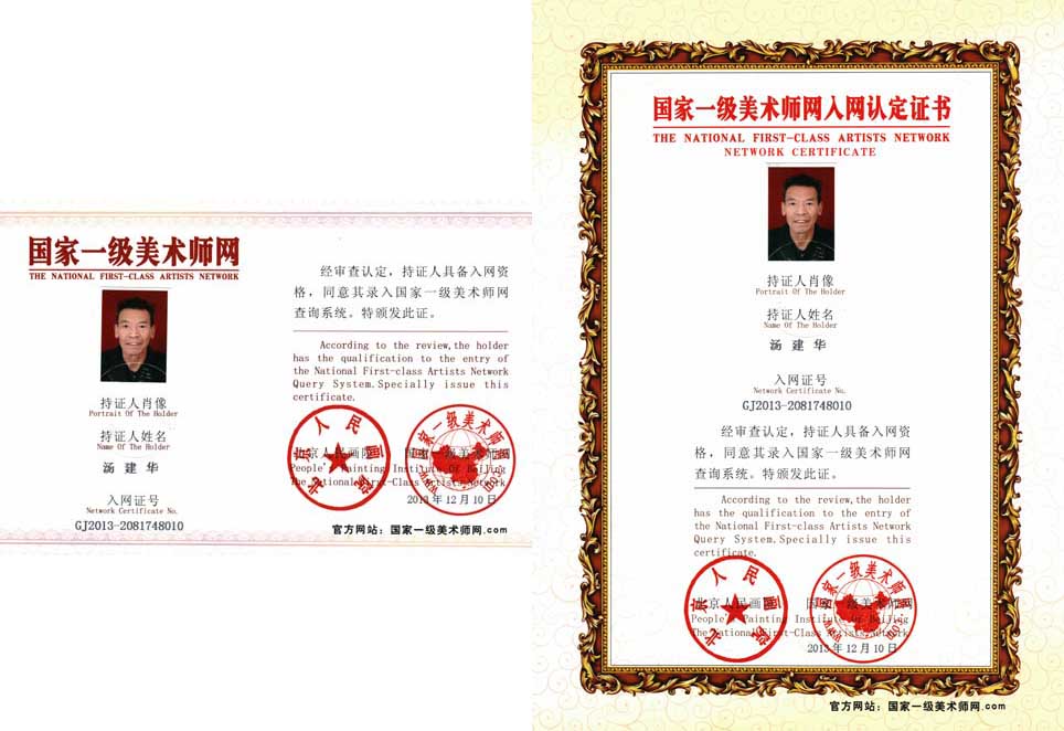 汤建华,男,六十六岁,一九四八年出生于嘉兴,从小受父亲训导。五岁教识方块字及描红、绘画,至今特好写字画图,二零零二年在嘉兴沈增植古居三人联合书画展、书画被嘉兴学院、南洋职业学校、嘉兴南湖革命纪念馆收藏和展览。画展效果良好,书法在2002年入选中国书法家作品选集,2003年先后在金猴春联纪念岳飞诞辰901年书画大赛中得金奖,2003年在嘉兴韩泰轮胎厂一幅二平方尺花鸟画义拍一千二百元拍出为全场拍出最高价。绘画在王铎古里书画院和美道子书画院、北京京都书画院被评委金奖和银奖,其它书画院优秀奖,铜奖一等奖十多次。被王铎书画院和岳飞书画院聘为名誉院长和高级书画家,高级院士荣誉称号,2004年被入选浙江古今人物大辞典,2009年被世界文化艺术中心大奖中华区评定中心评为世界文化艺术最高美学成就奖金奖,被世界文化艺术中心聘为顾问和嘉兴书画院理事会理事,嘉兴老年活动中心会员,今加入北京人民画院国家一级美术师网。
