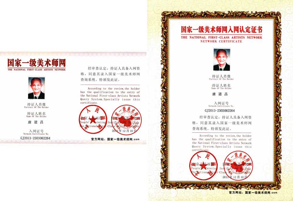 唐道昌,笔名笑泉、笑叟、号世外山人,1920年出生于桂林,毕业于桂林美术专科学校国画系,师从金石书画家马万里先生,亦曾受教于徐悲鸿、张大千等大师,擅画花鸟、人物及走兽。现为广西文史研究馆馆员,桂林市美术家协会会员,桂林市郊区美协顾问,广西老年书画研究会会员。作品曾参加国内外展览并获奖,《友谊长存》荣获国际优秀作品奖,第一届世界(亚太地区)民间艺术家最高奖—金飞鹰奖,首届世界艺术家华表奖,入编《全球华人名作大典》,又获二十一世纪中日书画名匠勋章,入编《二十一世纪中日书画名匠全集》、《一国两制话统一》获“金奖”及“特别金奖”,入编《中国艺术名家作品典藏》中国国家博物馆编辑出版,《白孔雀》获国粹奖入选奖金牌,入编《国粹奖艺术大典》,《踏破北国千里雪》获优秀作品一等奖,并授予“风云人物金奖”荣誉称号,入编《纪念毛泽东同志诞辰110周年大型艺术精品集》、《齐奔小康》获“中华国宝奖”,入编《中华国宝书画艺术大典》,《鸣春图》入编《中国当代书画名家珍品选》、《和平图》入选台湾“百扇展”专辑,《鱼水情》、《和谐》入选世界华人艺术精品大展,第三次中日书画名家作品交流展,荣获“国际金奖”,并被收藏。有的作品被广西文史馆、沈阳文史馆及中央文史馆等收藏。经中国收藏学术会、世界文化艺术鉴定中心,《中国收藏博览》组委会,审核评定,授予“当代中国书画市场最具收藏价值艺术家”荣誉称号。2009年,经专家评委会审定,决定授予“首届世界民间艺术大师”终身成就荣誉称号,2010年,经联合国教科文组批准,决定授予国际文艺“世界当代八大文化圣贤”终身成就荣誉称号。2012年又经联合国教科文组织审批,决定授予“世界第二次文艺复兴先驱者”(21名获此殊荣,其中中国大陆3名)终身成就荣誉称号。生平载入《中国民间名人录》、《世界名人录》、《二十一世纪人才库》、《中国历代书画名家辞海》等书中,出版有《仕女发型图例》、《唐道昌书画集》等。