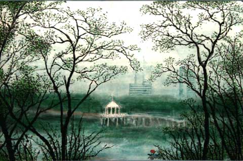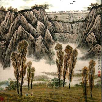 张体亮,号天亮。1929年生,河南新乡人,自幼酷爱绘画,师承多门,涉猎广泛,后主攻中国画——山水,写生足迹踏遍南太行,饱游饫览,受益匪浅,以画太行为己任,仍经常深入太行深处写生,观察体验太行的雄浑博大,磅礴气势,从中吸取艺术灵感,仍坚持研习摹古,博览现代诸家名著,融合贯通,画艺有进,形成了巍峨雄浑,平中见险的风格。