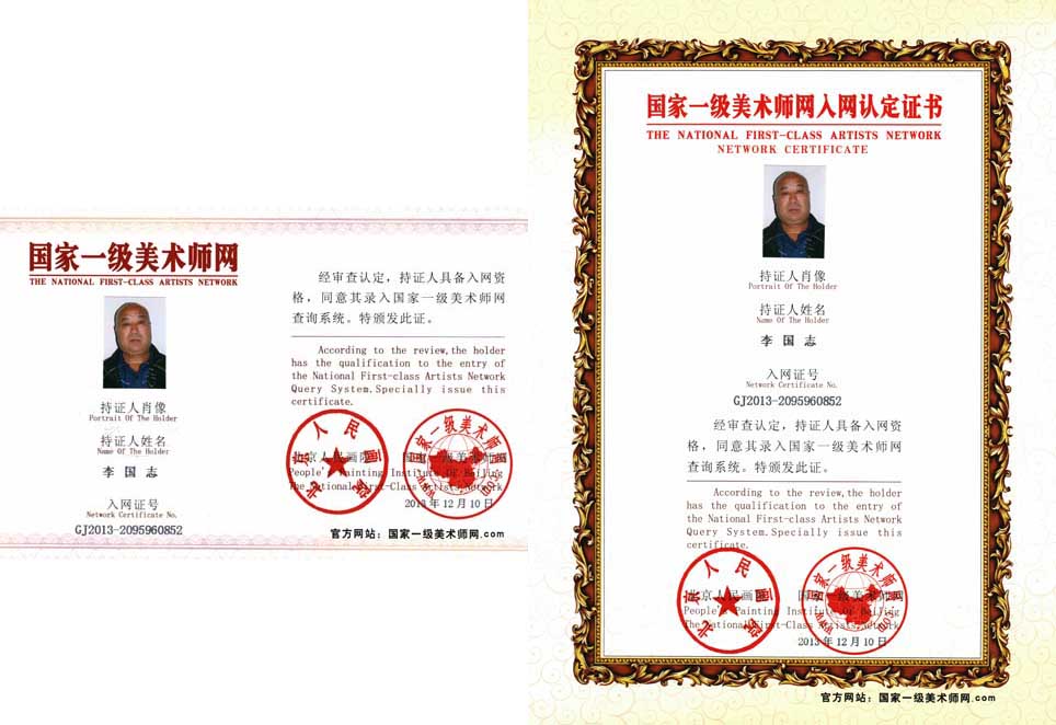2010年7月,“东方之冠”全国书法美术作品展,颁发入展收藏证书。