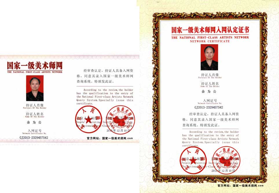 在2008年全国征联实用春联百花奖获奖,各种书法入选在《中华名家翰墨典藏》、《魅力世博会》、《中华国粹大典》、《中华百年国粹》、《中国当代实用书法大观》、《当代名家颂党诗书画艺术精品雅集》、《中华国粹人物年鉴》、《唐诗印象首届全国专题书法艺术展》、《纪念毛泽东在延安文艺座谈会上的讲话发表七十周年中华红色艺术创作展》、《中华寿典》、《中国养生艺术宝典》、《海峡两岸书法大成集》。在第一、二、三届全国诗书画印四绝大赛中,历次全国书法比赛获一等奖,金奖,并授予“中华百强书画家”、“当代国学家”、“优秀中华文艺家”、“中华名人杰出成就金奖”、“优秀共产党人”、“党旗飘飘,当代名家”等荣誉称号。并载入《中国历代书法家志》、《中国当代书法艺术家辞典》、《中华姓氏文化名人辞海》、《中华姓氏楹联家大词典》,嵌名对联墨迹散布海内外知名人士收藏。代表作有《余为公格言墨迹选集》、《余为公春联墨迹选集》、《毛泽东诗词行书一百米长卷》。为博白“龙华寺”及广西合浦县石湾镇“桂南余氏总宗祠”题编及楹联,举办书画余氏文化长廊。