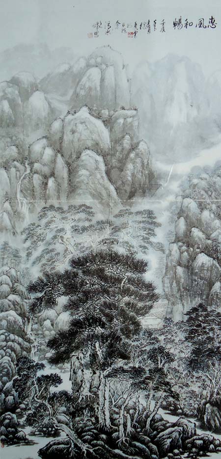 自幼习书,致力于各家名帖,尤爱“二王”、过庭、米芾等诸家,善书行草。对董源、巨然、范宽和元四家著力较多,师承山水画家索唯哲先生笔墨。
