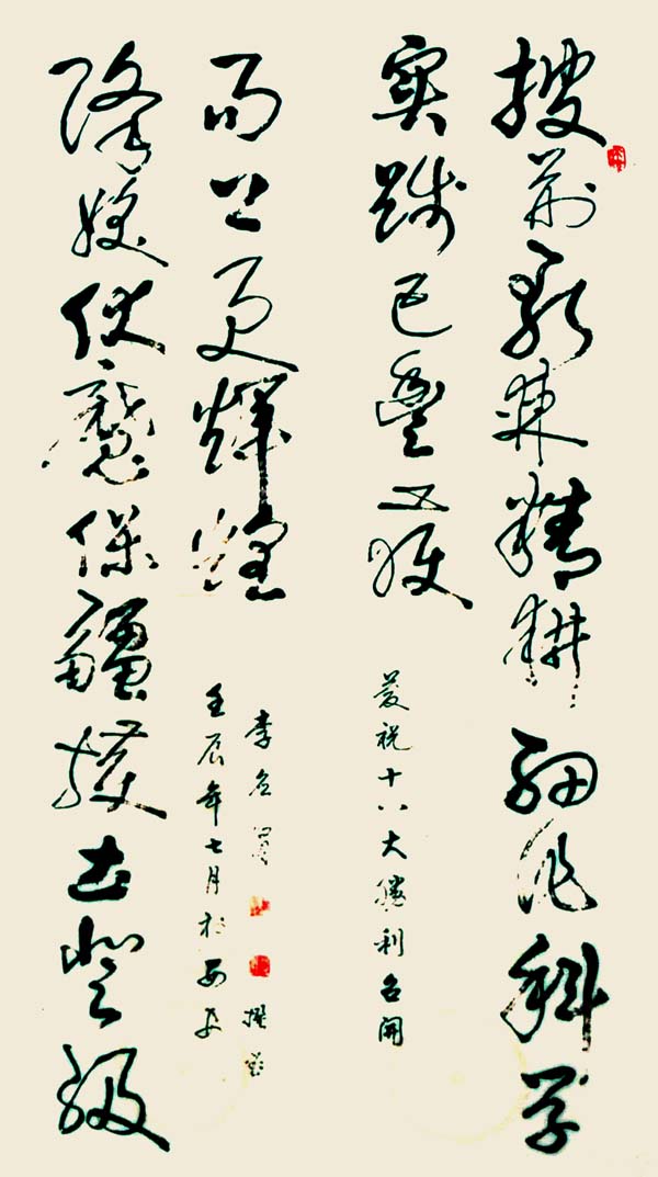 2012年,在“纪念毛泽东《在延安文艺座谈会上的讲话》发表70周年中华红色艺术创作展”获金奖。同年,在“全国楹联书法大赛获”金奖,在全国草书大赛获金奖。