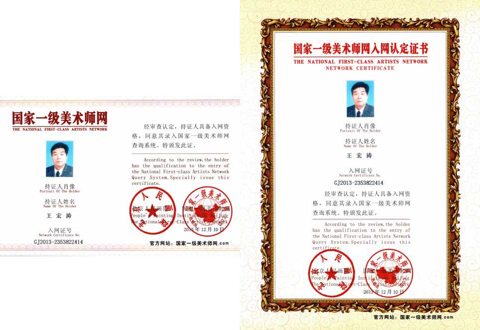 2013年1月中国名家书画院定为“特聘院士”。