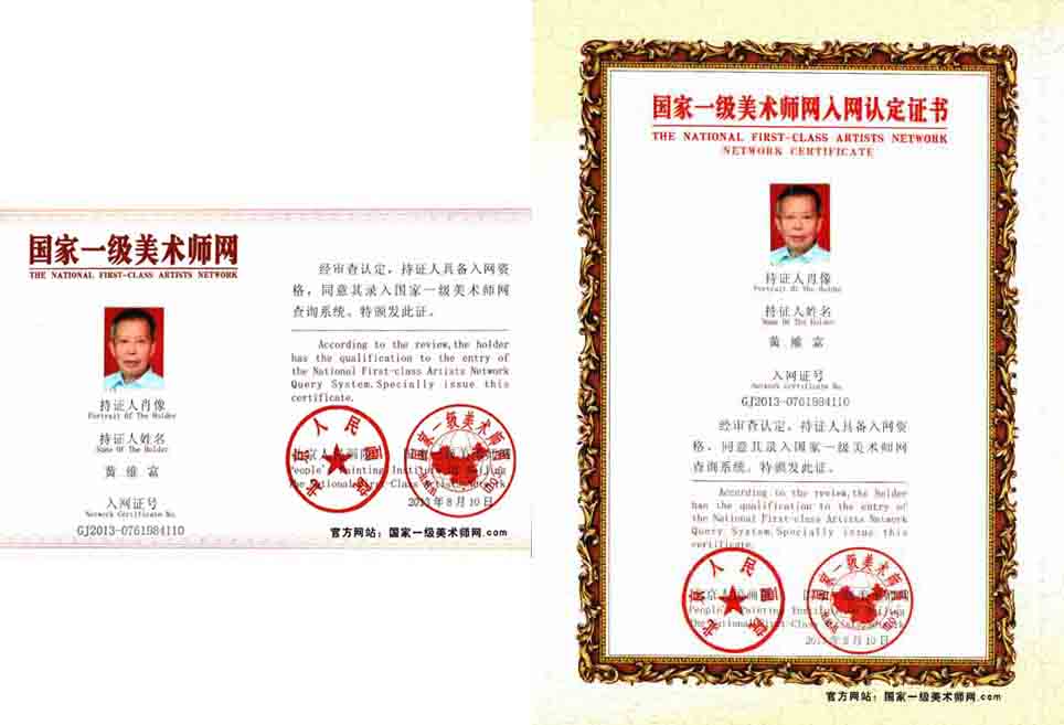 黄维富,男,1935年7月出生,汉族,四川内江市人,高中文化,中共党员。系上海中华书画协会会员、中国书画人才研修中心高级研修员、中国艺术研究院一级书法家、中国东方神州书画院院士、香港特区国际羲之书画陆家副院长、中国艺术家交流协会终身名誉主席、北京国艺粹宝书画陆家名誉院长、国际知名文艺家联合会主席团副主席、中国书画收藏研究院高级院士、联合国国际文化艺术家联合总会总会理事、英国皇家艺术研究院荣誉院士。一九九五年通过全国首次书画人才资格审定考核。