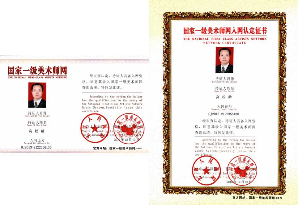 被世界书画艺术名人资格审定委员会特颁发《世界书画艺术名人证书》、《国际书画篆刻艺术名人资格证书》、《世界硬笔书法家名人资格证书》。书画作品同时在海外进行销售。出版有“国礼艺术专集”。