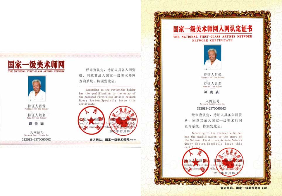 谭贵森,现为满洲里市美协理事、内蒙古老年书画协会理事、东方艺术家协会理事、中国书画名家协会理事、中国老年书画学会理事、2012年全国老年十佳,擅画北方冰雪,有外部合集出版。