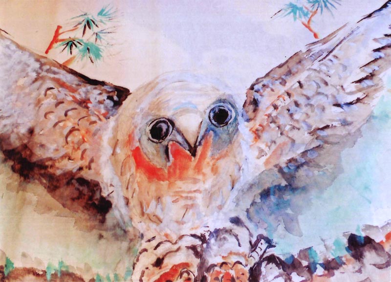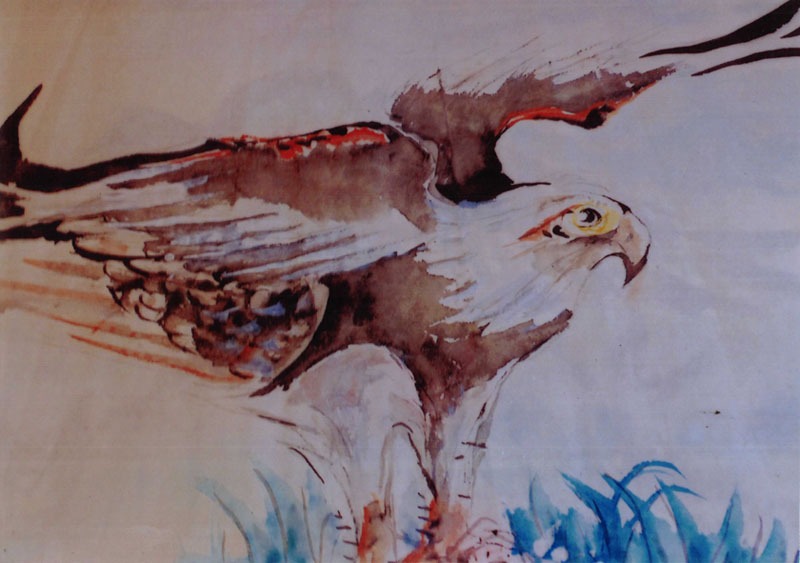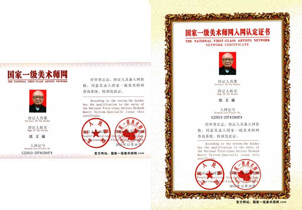 沈文福,字:沈红,1927年12月12日生于贫苦家庭。福建省诏安县人。父亲早死,母亲赴南洋求生,诏安初中毕业后由贵人相助赴漳州龙溪师范艺三组学习。毕业后,在解放战争期间上乌山参加游击队,尔后因工作需要回城搞地下党工作。诏安解放后在诏安县委会任秘书干事,后赴福建大艺术系学习深造。毕业后分配在安溪漳浦一中任美术教员。1960年调任漳浦杜任中学任教导主任同时加入中国共产党。后因母亲逝世申请回诏,被委任诏安华侨中学校长,文化革命期间被打成走资派。平反后仍任城关中学、桥东中学校长职务。1990年离休享受县级待遇。目前重复旧业从及美术创作,我的顾装是要完成100幅鹰集梦想。