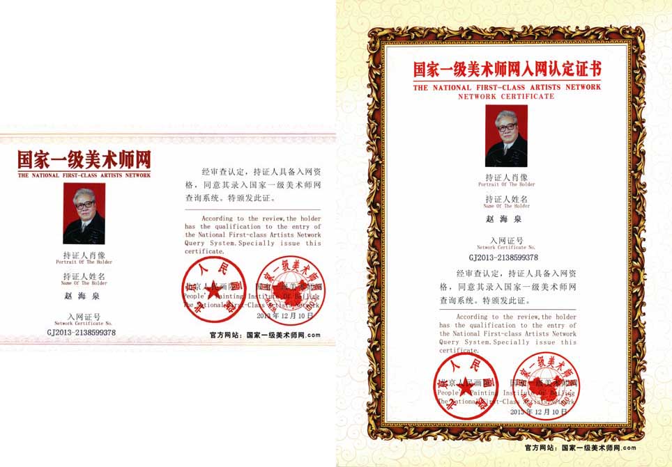 赵海泉,字汇源,男,汉族,别署:博艺斋主。1928年5月生,山东茌平人,今居山东临清市,1946年参加革命,现为中国书画家协会高级会员、国家一级书画家、国宝级艺术家、国际知名文艺家,辛亥百年百位中国艺术大家、中国国家书画院名誉院长、中国诗书画联盟网名誉主席。
