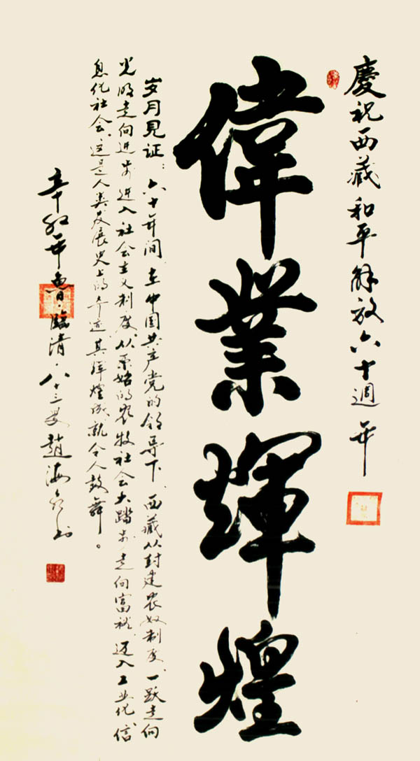 书法是我一生的爱好和追求,自幼广临群帖,博采众长,尤擅长榜书、行楷。被专家赞评:“传统书体浓厚,笔法刚劲有力”。