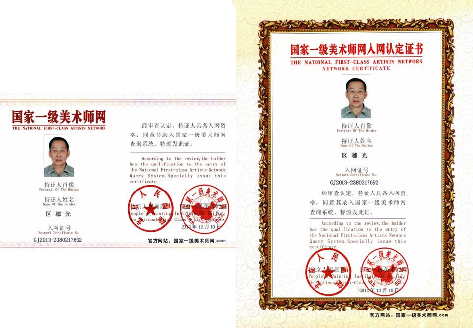 区穗光,男,1948年生,广东顺德人。1993年毕业于华南文艺大学美术系,广州市海珠区文学艺术界联合委员会第四、第五届委员,中国文化学会艺术委员会主席,“首届中国艺术飞天奖终身成就奖”获得者。英国皇家艺术研究院荣誉院士、客座教授。
