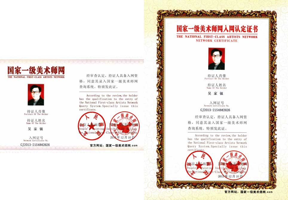 其书法作品在国际“正大杯”书画篆刻大赛中获“特别奖”;在入选《国际现代书画名家教授画册》评选中获“国际金奖”;1999年9月书法作品在国家文联批准的“全国民间工艺美术书法大展”中获“特别金奖”;同年10月毛笔书法作品在第五届国际书画作品展览中获“国际金奖”。2001年11月获文化部批准的“国粹奖”入选金牌;在2002年12月第四届祖国颂书画摄影大赛中获毛笔书法“金奖”。2003年10月毛笔书法作品在第七届全国书画作品展中获“金奖”。先后被中国艺术研究院文研中心,亚细亚艺术研究院、中国画研究院、中原书画院、黔江书画院、韩国碑林园、西安中国画研究院、国际美术家联合会,香港特区等十多家收藏。作品曾多次进入国家书画专场拍卖会。曾任多部典籍顾问编委。书法论文、作品、传略相继入选《全国中小学教育论文选集》、《二十世纪中国人物大典》、《国际现代书画名家教授大辞典》、《中韩当代书画名家大辞典》、《世界书画家名录》、《世界当代著名书画家真迹博览大典》、《世界名人录》、《世界美术大典》等近百部典籍和出版《吴家镇书法集》。先后获中、日、韩、加拿大、比利时,新加坡等世界上16个有影响的杰出团体联合颁发的《世界书画名人证书》、《二十一世纪德艺双馨功勋艺术家》、《全国金奖艺术家》、《中华艺苑名家》和《当代百名杰出书画家》称号。对此,《安庆日报》、《人民日报》及十多家电视台、多家网站先后进行了宣传报道。