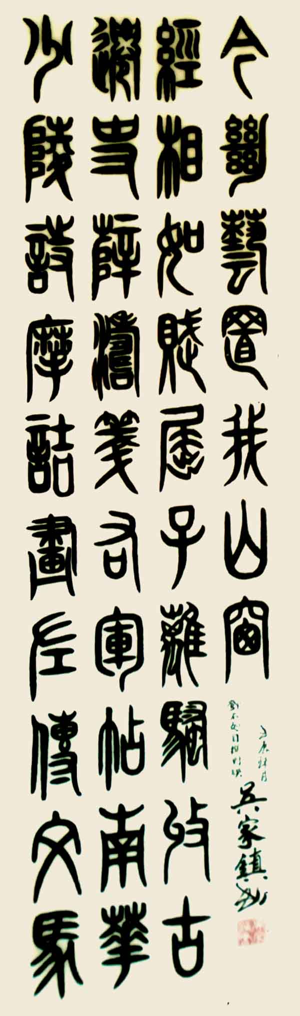 吴家镇,安徽怀安人,生于1949年,特级书法师,2007年获美国名人科学院书法荣誉博士学位。系东方书画家协会会员;国际美术家联合会会员;中国艺术研究院文研中心特邀书画师;中韩文化艺术专家委员会特聘委员;(国际)中国书法家协会会员;国际羲之书画院终身荣誉教授。