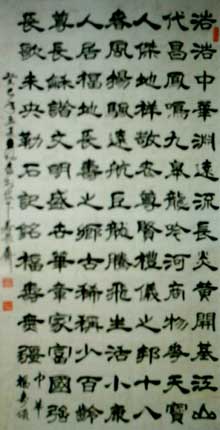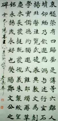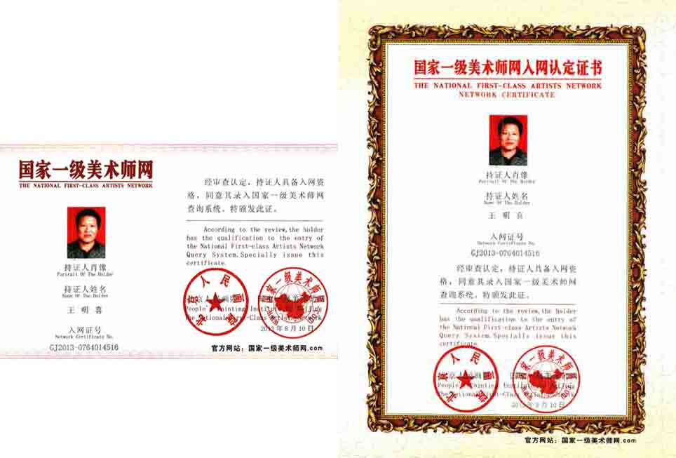 王明喜,字清乐,岱鹿居贤,岱下清乐斋、若愚斋斋主,一九五五年三月二十日出生于泰山山鹿一书香门第,自幼承家严训,对中国传统书法艺术十分酷爱,学唐楷习魏碑。临书法培训班,受益非浅,以优异成绩结业,经苦心营铸,深得用笔之道,作品讲情趣、求韵味,用笔苍经秀润,涵蕴丰富,劲底深厚,其作品历获全国书法大奖赛(展)金、银一、二、三、优秀奖,并被众多书刊发行永久收藏,在泰安日报多次发行,在泰山书画院举办的庆祝中国共产党建党九十周年书画庆典活动中,怀着对毛主席无比敬仰和怀念,展示了精心书写的九十首毛泽东诗词长卷,宽六十五公分,长达116米,受到书法同仁、专家和领导的高度赞誉,并多次参加社十周年精品展荣获二等奖,二○一二年国际大赛荣获二等奖,王锋杯全国书画大赛荣获金奖,受聘为王锋故里书画名誉院长(八一杯)中国南昌第八届文学艺术大奖赛,荣获(一等奖)首届三苏杯中国书画大赛中荣获(一等奖),并为东坡书画艺术研究院院士,全国中老年书画作品北京邀请展荣获(金)奖,并授予《中华人民共和国伟大复兴艺术家贡献奖》庆祝中国人民解放军85周年老干部红军老党员全国中老年书画作品,邀请展荣获(银)奖,被授予(当代百年特殊贡献艺术家),中国书画艺术研究会院士、江西省人文书画院名誉副院长、高级书画师、终身会员、中国文人书法家协会理事、中、新文化艺术促进会会员,正式评为(当代中国实力派润格艺术家)(国内每平方尺为2600元人民币、海外以美元计),二○一三年三月被中国名家书画院授予(中国当代艺术名家)中国书法家协会考级七级。二○一二年应邀代表中华艺术对港、澳两地、新、马、泰三国书画交流。