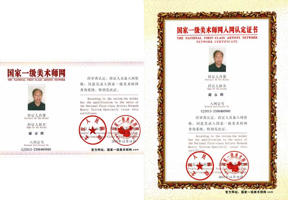 谢永辉,男,汉,1956年8月生,大专学历,一级美术师、中国书法学会理事,中国五体书法研究会副会长,中国艺术名家研究院副院长,新华艺术网艺术委员会执行副主席,江苏省唐伯虎书画研究院副院长、河南名家书画艺术研究学会理事。