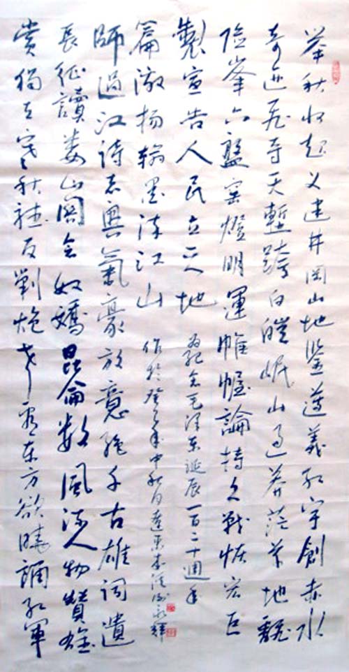 2010.1 参加纪念毛泽东沁园春雪发表65周年第二届全国书画大赛荣获金奖,作品入编《现代书画红色经典翰墨大观》。
