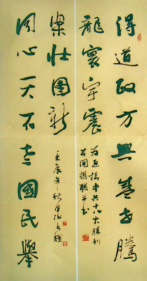 2010.4 参加全国楹联书法绘画邀请展荣获联墨创作奖,作品入编《作品选》