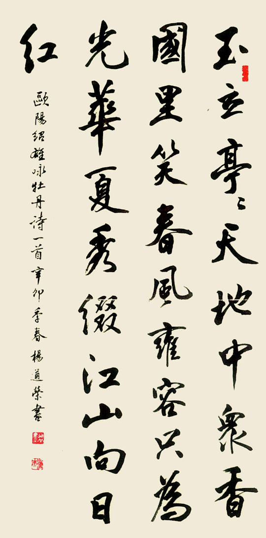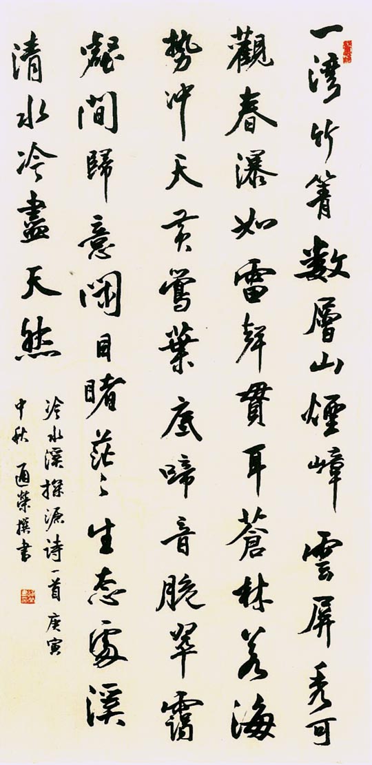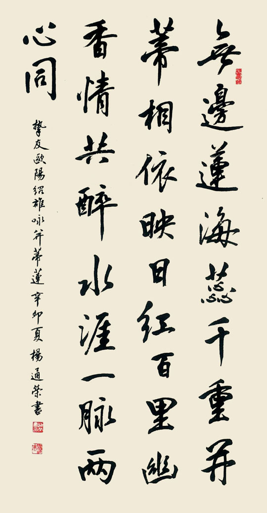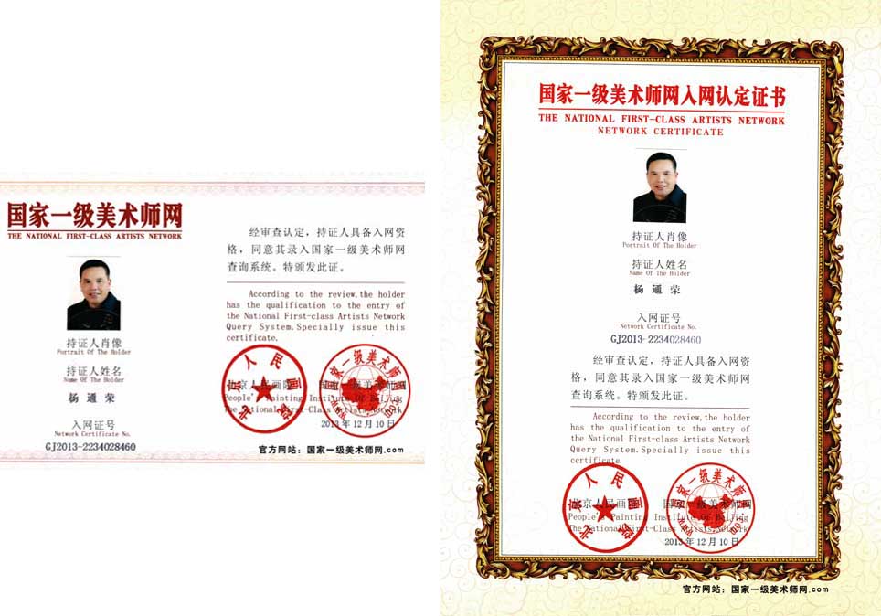 杨通荣,一九四九年,出生于农村,五六年发蒙读书。因家贫,买不起钢笔,小学期间,一直使用毛笔,以老师的板书为字帖,用心学习。记得五年级时,我用毛笔书写的一篇作文。被作为书法范文贴在学校专栏上。激发了我对书法的钟爱。六五年初中刚毕业,正逢知青上山下乡,我亦作为回乡知青,返家务农。环境的改变,条件之艰辛,丝毫未减我对书法的酷爱。劳动休息间隙,即以树枝为笔,田间地头为纸,反复练字,成了我的习惯。七九年县里开展地名、人口、土壤普查,招收书写员,我因字写得较好,被县里录用。因普查工作刻写工作母图需要,要求标准的仿宋体、黑体字,经过无时无地反复刻苦练习,练就了一手漂亮的硬笔书法。八二年拜吴法乾先生(中国书法家协会会员)为师。经过恩师的精心指教,正统培训,实现了我多年来梦寐以求的寻正脉,走大道的信念。