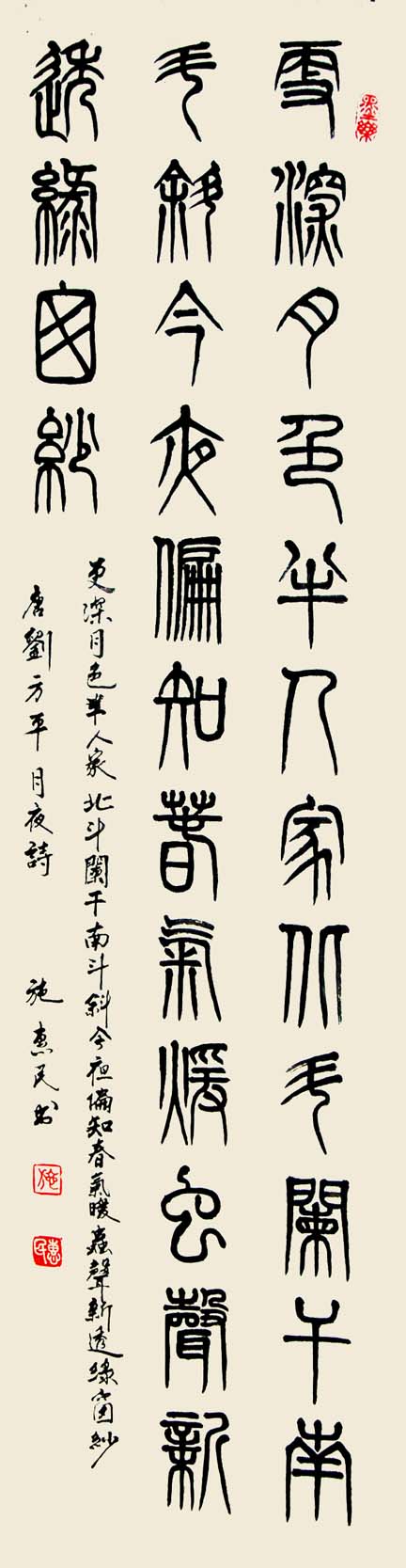 施惠民,男,江苏扬中市人,1946年9月出生,安徽广德县人民医院医师,2006年退休,07年偶得书法入门一书,爱不释手,常习之,终有小成,现为广德县老年书画家协会理事,书画院高级书法师,宣城市老年书画联谊会会员,主功篆书,兼习隶、行、诗。