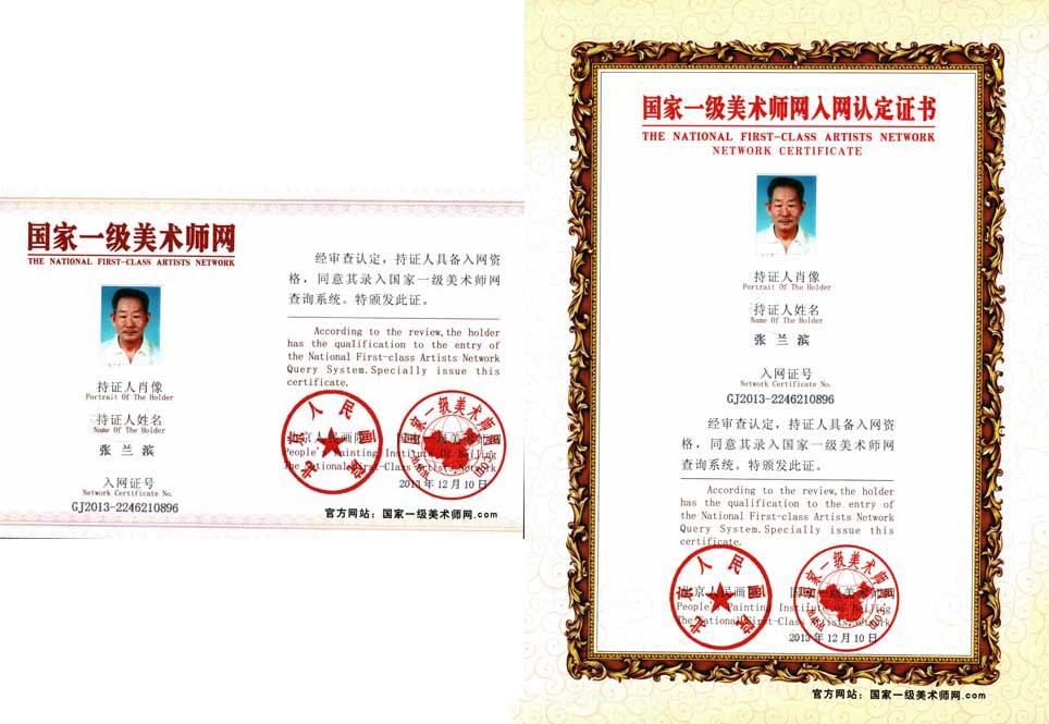 经ISQ9000A艺术体系,艺术资质认证评审委员会评定:张兰滨先生为“中国优秀书法家”。