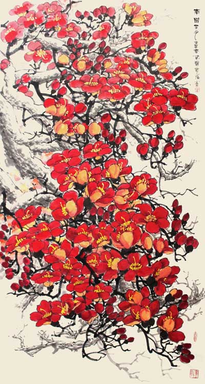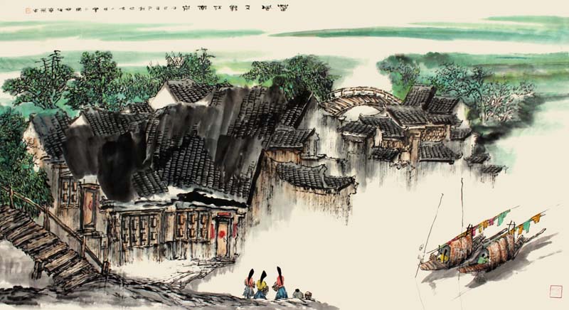 1994年创作的巨幅长卷《烟雨江南图》长73米、宽0.77米,收入吉尼斯记录。1998年 7月3日,香港政府选用他的作品《鱼舟晨曲图》作为礼品赠送给美国总统克林顿。2007年11月6日,作品《硕果累累》作为国礼赠送给英国前首相布莱尔。