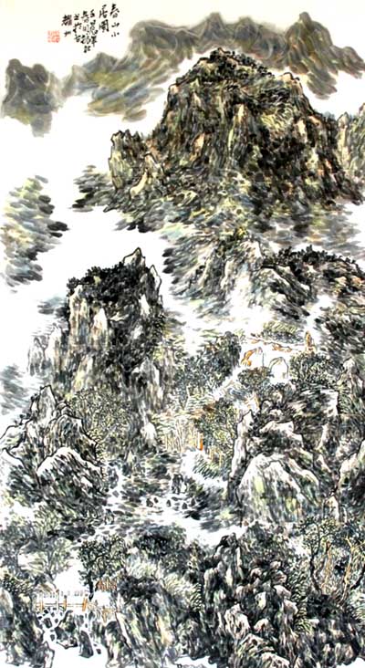 武振社,字武墨、墨道斋主,1962年生于北同官,祖籍河南。84年分配到王益区文化馆从事书画研究创作自今,现任铜川市王益区文化馆副馆长,二级美术师。多年来,阅览了大量的书画理论书籍,潜心研究各派风格典 范。1990年考入西安美术学院国画系深造,以晁海、刘文西、杨建兮为导师系统学习了中国画的各种传统成为早期创作上的基础。风格上力求率直简朴,平淡超逸之情致。1996年考入陕西师范大学文秘系,开始对中国传统文化及古典文学的研究和深入学习,将自然形态和中国文化结合在一起,寻找文化艺术脉络,确定自己的主攻目标。