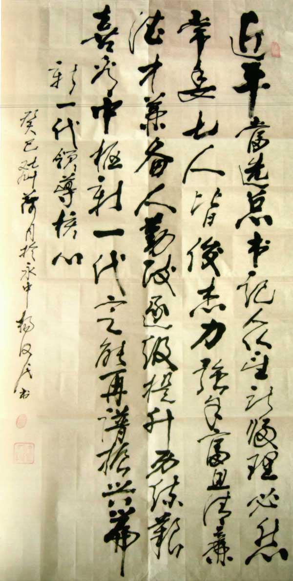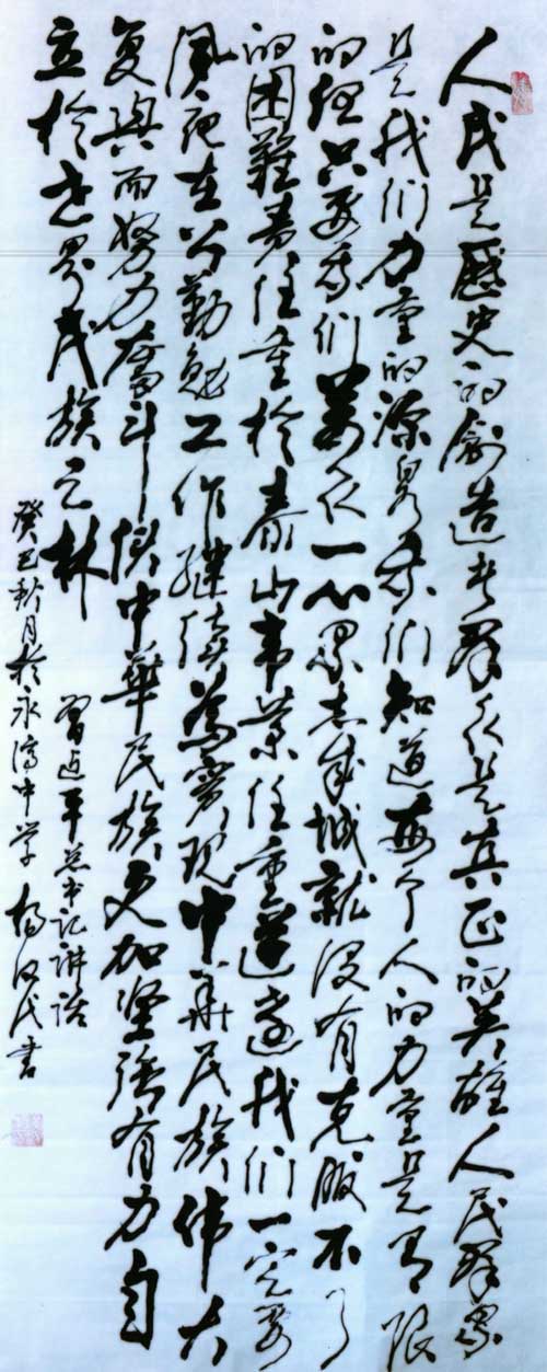 杨汉民,1935年生,山西省永济市人,1951年参加工作,1995年退休,退休前任山西省永济中学副校长。现为中国老年书画研究会创作员、吴道子艺术馆理事、一级书法师。
