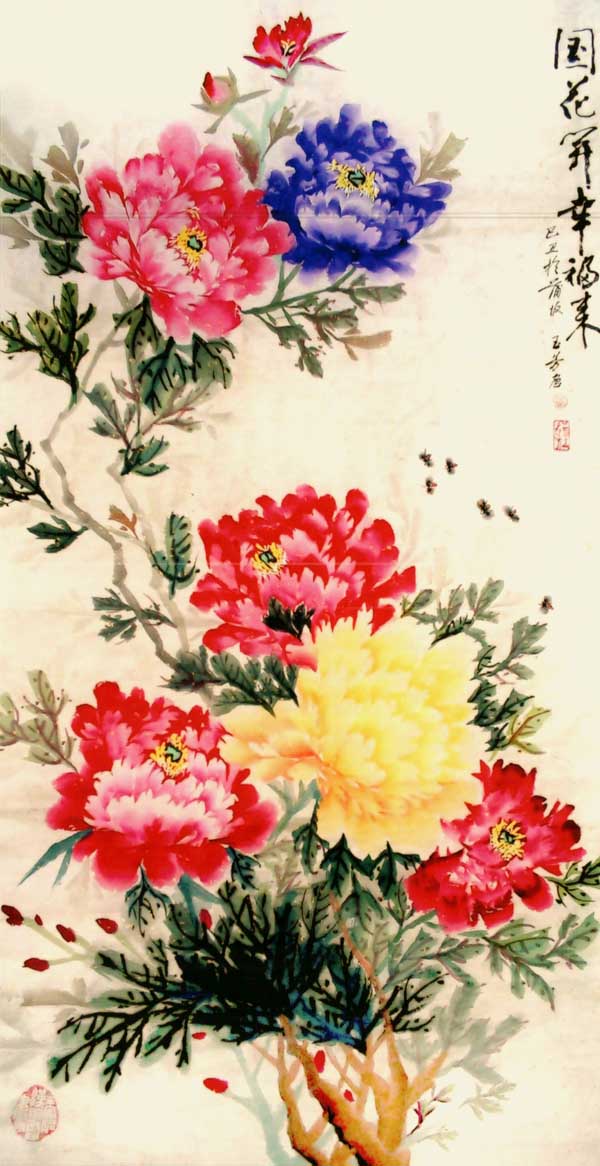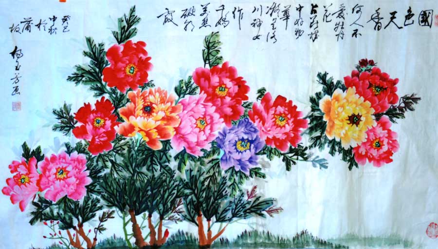 杨玉芳,女,1937年生,永济市王官峪人,毕业于《北京老龄大学牡丹专修班》,从师于杨双端,并参加中央电视台《夕阳红》书画课堂培训,擅长牡丹、梅花、山水等。