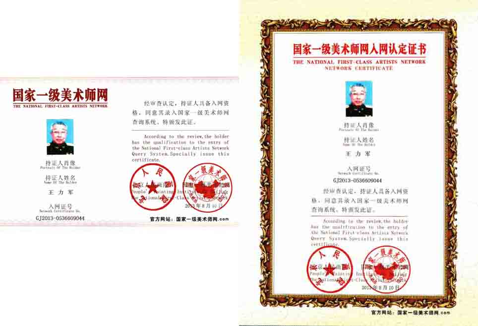 王力军,别名晋龙,笔名王壬,祖籍山西,1936年生于黑龙江,1949年参加革命,1992年离职休养,现为哈市军休四所离休干部(一届党委委员、第一支部书记),1993年参加哈市老年人大学、2000年加入黑龙江老年美术大学攻习山水界画。2003年取得山水界画毕业资格,评为一级美术师。现为中国书画艺术委员会会员;黑龙江老年书画研究会创研员;黑龙江省艺术摄影协会会员;哈尔滨市老年摄影协会会员;曾任哈尔滨市美协老年分会界画研究会常务副会长现任顾问等职。近年被国际名家书画院、九州枫林国际书画艺术研究院、中国国际交流出版社地、中国毛泽东思想学术研究会等著名书画艺术和学术院会聘为“院长”、“理士”、“副院长”、“客座教授”、“特约顾问编委”、“我们的队伍向太阳共和国将士功勋谱”一书聘为特邀编委等职。同时曾被中国书画家协会、中国国际书画研究会、世界华人书画家联谊会、中国文艺协会、中国改革报社、中国纪实文学研究会等名家书画艺术机构授予“中国书画名家”、“中国勇于创新书画家”、“中国功勋书画家”、“当代文学之星”、“当代百佳艺术名家”、“中国文艺成就艺术家”、“奥林匹克艺术之星”、“共和国杰出书画家”、“中国世博书画名家”、“民族文艺领袖人物”、“世界著名华人艺术家”、“中国当代艺术名家”等荣誉称号。