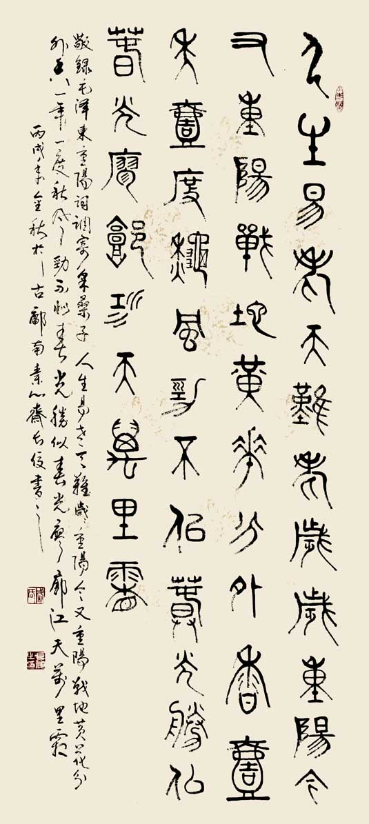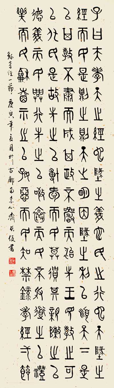 投笔从戎近三十年,是一名军队政治工作者。对书法情有独钟。解甲后,结识了一些书画界的老师和朋友,潜移默化,对书法产生了浓厚的兴趣,工作之余常试笔墨,临摹涂鸦,废寝忘食,知命之年和书法结下了不解之缘,先后临写了王羲之、柳公权、孙过庭、文征明、邓石如、吴大征等名家字帖。善篆书,喜行书。篆书作品,多次在全国性书画大赛中荣获金奖。其创作的百福百寿图,深受乔迁新居,老人庆寿,得子生女者的喜欢,其书法作品多次被友人索要收藏,并被多种书画集收编。