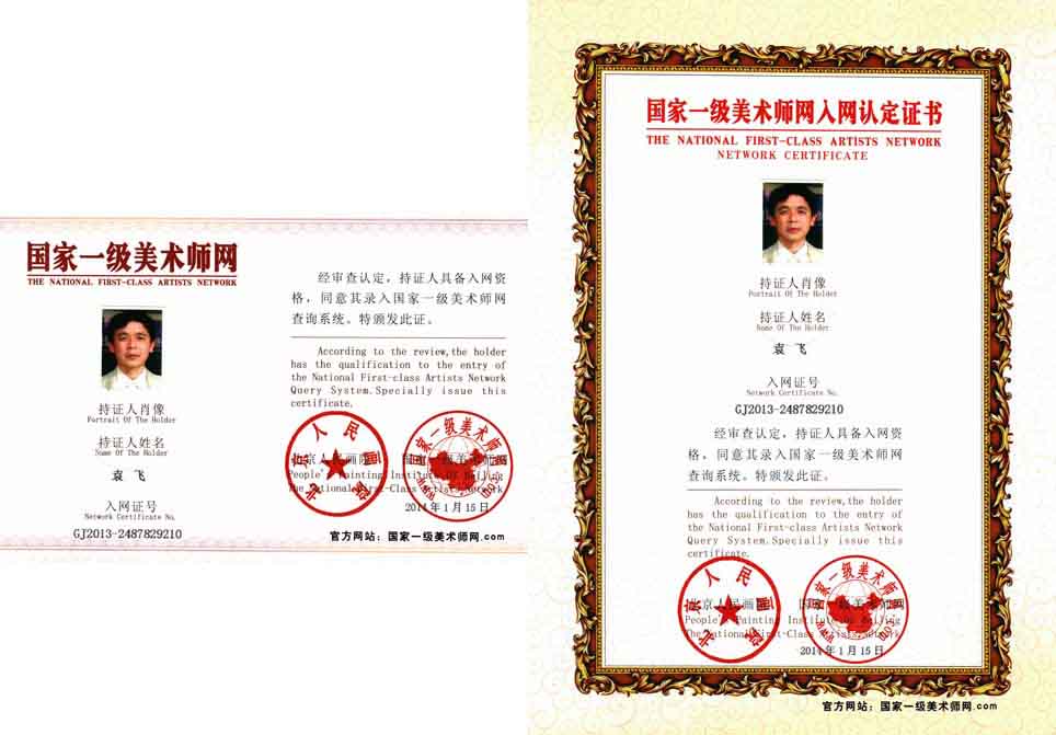 袁飞,江西寻乌县人、1961年生于南昌市,全国著名书画家,国务院国宾礼特供艺术家,世界客家文化名人,国家一级美术师,文化部文化市场发展中心特聘书画家,中国艺术研究院特约研究员,中华国礼出版社荣誉社长,中国传统文艺学会艺术品评估委员会主席。