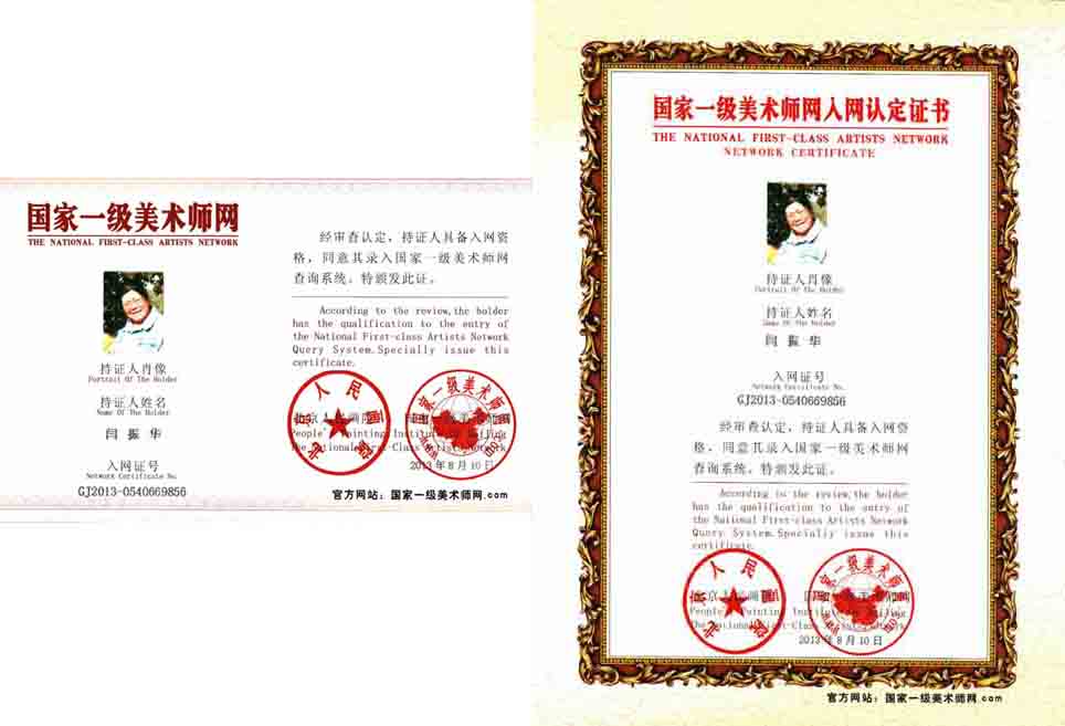 闫振华,高级工艺美术师,副教授,中共党员,女,1943年3月出生,内蒙古丰镇人。1965年毕业于山西省艺术学校。河北省美协会员。名画家邹兰平、林凡的学生。主要业绩:走上工作岗位以后,一直坚持写作、创造。多次参加省市举办的各种形式画展,多次获奖,其中最突出的是油画。绘画作品、论文多次发表。1996年3月荣获全国性的大奖,同年10月油画《龙踞雪域》荣获徐悲鸿国际艺术研究会在中国历史博物馆主办的全国新世纪艺术大展三等奖,11月水彩画《工地》荣获全国首届长沙“环保杯”书画大赛三等奖,12月油画作品《布达拉宫原貌》荣获由美国和中国美协在中国美术馆联办的丁绍光全国美术作品大展优秀奖。2000年元月水彩作品《清西陵大红门》入选《当代绘画艺术》画册。2000年11月水彩作品《莲池》入选《中华翰墨名家作品博览》。个人业绩1999年7月入编《世界华人文学艺术界名人录》,2000年7月入编《世界人物辞海》,2000年9月入编《二十一世纪人才库》,2001年5月入编《中国人才世纪献辞》。2011年6月被河北农业大学林学院党委评为第二次优秀共产党员。2002年4月油画作品《青春少女》入编《中国书画收藏宝典》,2002年5月中国画作品《童年三个小女孩》、《荣艳长春》入编《中华热土》,2003年9月去西藏拉萨、当雄、林芝等地写生。10月在西藏图书馆举办了四人画展,水彩作品《白塔》被西藏自治区展览中心收藏。同年10月入编《当代书画家蔫览》的作品有《布达拉宫》、《中流砥柱》、《西藏藏棚》,2005年3月水彩作品《清西陵》、《秋日》入编《中华沃土》。二○○六年七月油画作品《少女半身像》入选首届“翰墨养生全国书画名家邀请展”并荣获金奖。二○○六年十二月被河北农业大学关心下一代工作委员会评为先进工作者。二○○八年十月国画《秋菊图》入选河北省教育系统“盛世杯”离退休职工书画摄影展。并荣获优秀奖。二○○九年十月水彩画《柿子熟了》《月季花开了》入选“盛世中国中华之子中国翰墨名家艺术长卷”精品集。二○一○年十月国画《三个小女孩》入选“鼎盛中华书画名家名作邀请赛展”并荣获优秀奖。二○一○年十月中国书画学会中国文艺传媒研究会授予“世界华人艺术领袖”荣誉称号。二○一一年三月参加当代中国国学名家系列丛书出版闫振华与伴侣予非画集。二○一一年八月水彩画《布达拉宫东后侧》钢笔画《青岛华石楼》入选中国共产党建党90周年书画大赛作品集。并荣获特等奖,同时授予当代著名红色艺术家荣誉称号。作品被中国国学研究会收藏。二○一一年十二月国画作品《秋菊图》、《金边巾兰》、《俩姐妹》入选“共和国杰出国学专家名录”并荣获“百年中华国学杰出贡献奖”二○一一年十二月被河北农业大学关心下一次工作委员会评为先进工作者。