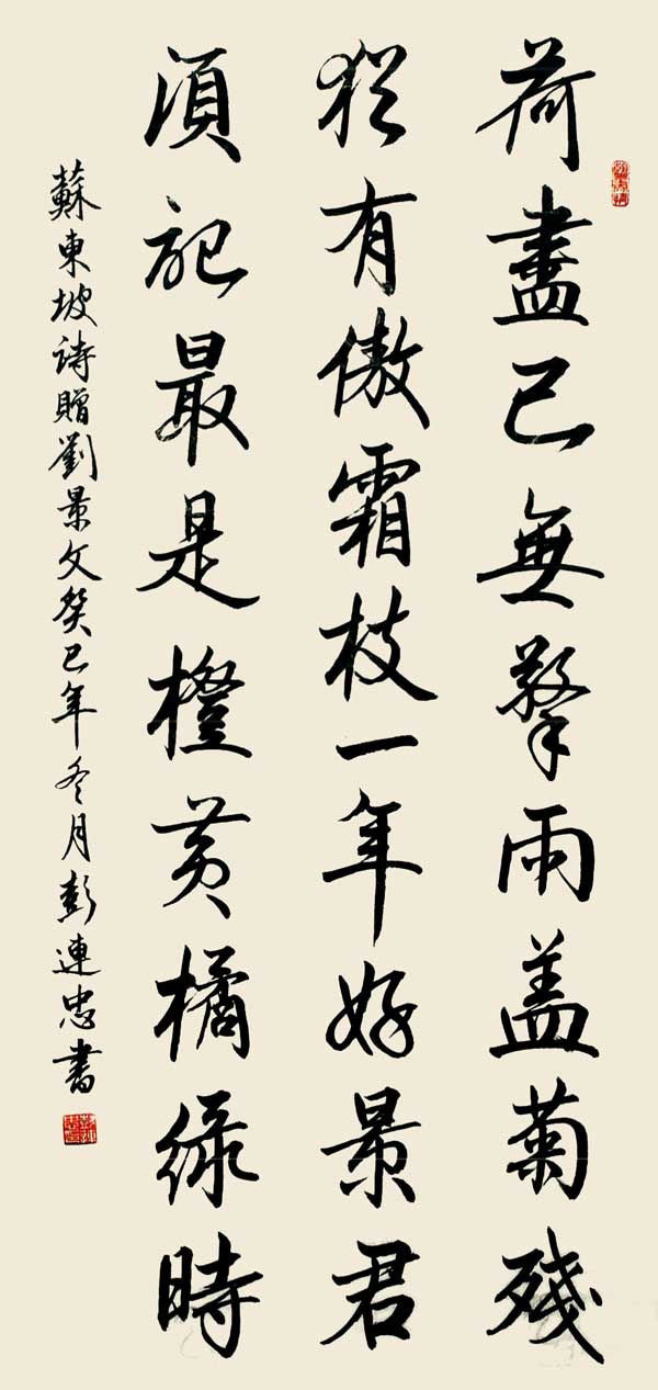 彭连忠,男,别名无墨,1956年6月生,四川乐至县人。吾少时酷爱习字,其志感动桑梓长者,常临吾舍,授其艺,励其志,初入书法之门,为其深达,先后进修于上海、贵州,艺术专修学校及天津茂林书法学院等,得良师指导,勤习苦研书艺大进。