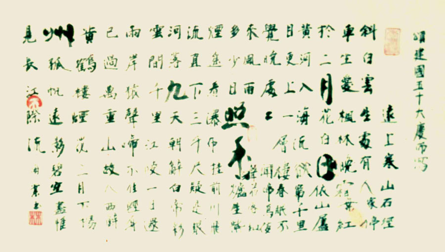 书画常研究,不断探索自己的新思路,发挥创作自己的艺术特色,风格善美的书画作品。以及诗联作品推上新台阶。由于2006年头一年参加广西文学艺术活动中,被评为优秀会员,十几年来这是第一次参加的,经(广西民政厅印制发证):特级文学研究员较高的荣誉称号。