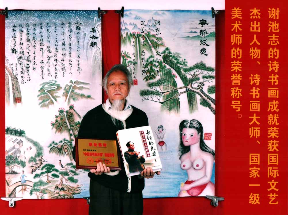 在诗书画大师、国际文艺杰出贡献的评选中,谢池志荣获“大师”的荣誉称号及荣获“国际文艺杰出贡献奖”!