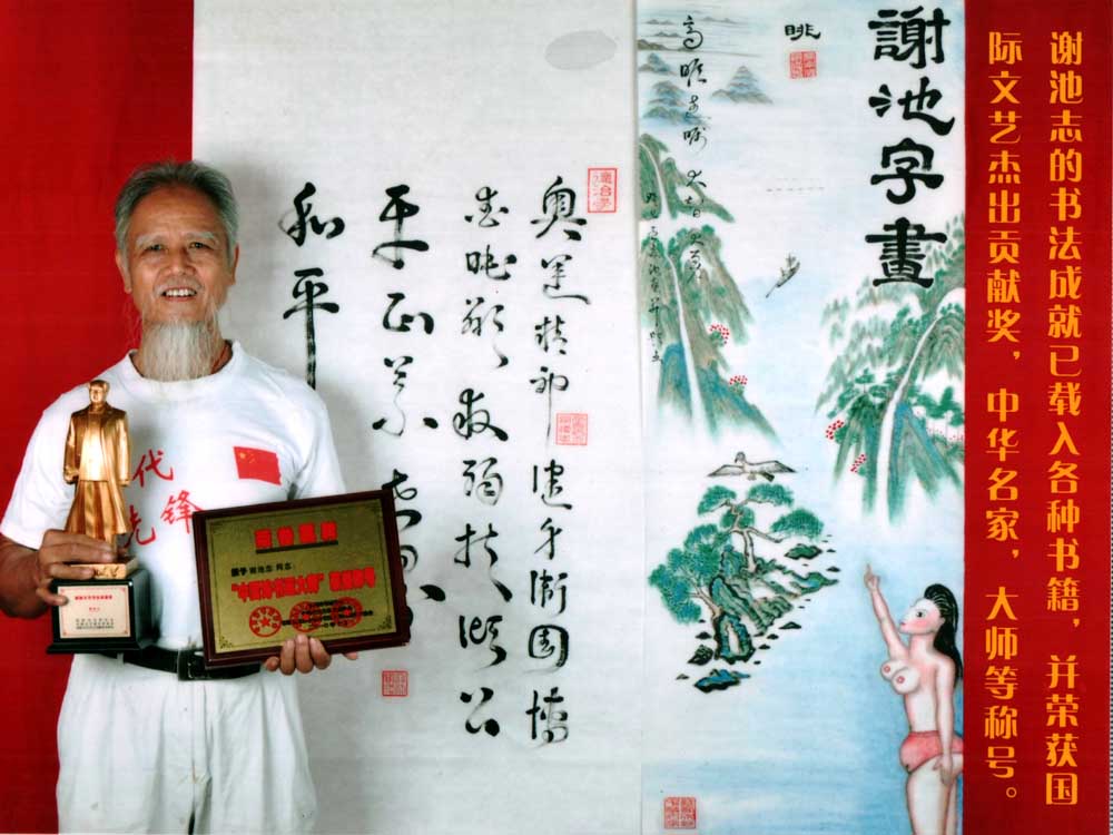 在博爱之都——第二届当代书画名家作品展览,谢池志的作品被评为“金奖”!并授予“博爱书画家”荣誉称号。