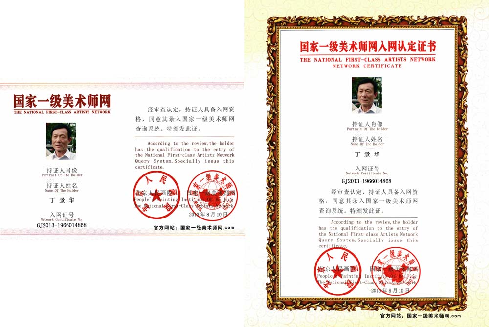 近年,书法作品获“首届中国‘西湖杯’国际书画大展赛”、“首届八大山人文学艺术大奖赛”、“首届丹青绘华夏全国书画艺术大赛”、“第二届全国楹联书法邀请展”、“第二届海峡两岸荷花诗书画大赛”、“纪念辛亥革命百年全球华人书画家邀请展”、“首届全国书画名家小品邀请展”、“全国书画名家庆澳门回归十周年”、“第二届全国诗书画印四绝大赛”及中日、中韩、中新、中澳交流展等近30次金奖以上奖项,作品编入《中国书画名家大辞典》、《现代书画家翰墨大观》、《中华盛世墨宝》等20余部典籍,出版有《丁景华书法作品集》等。