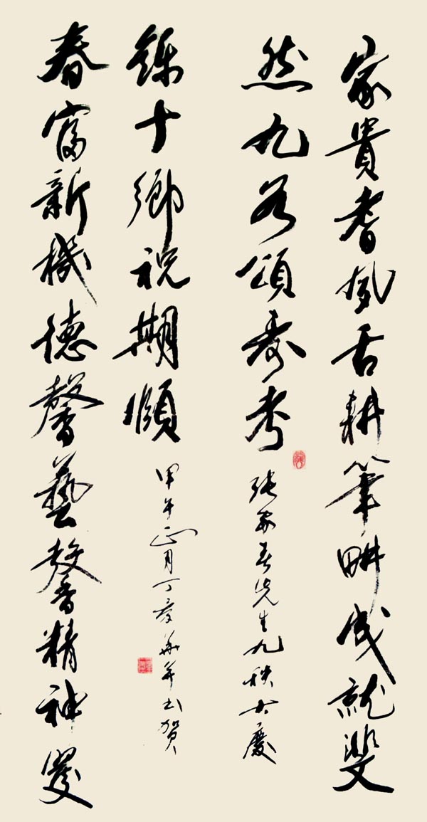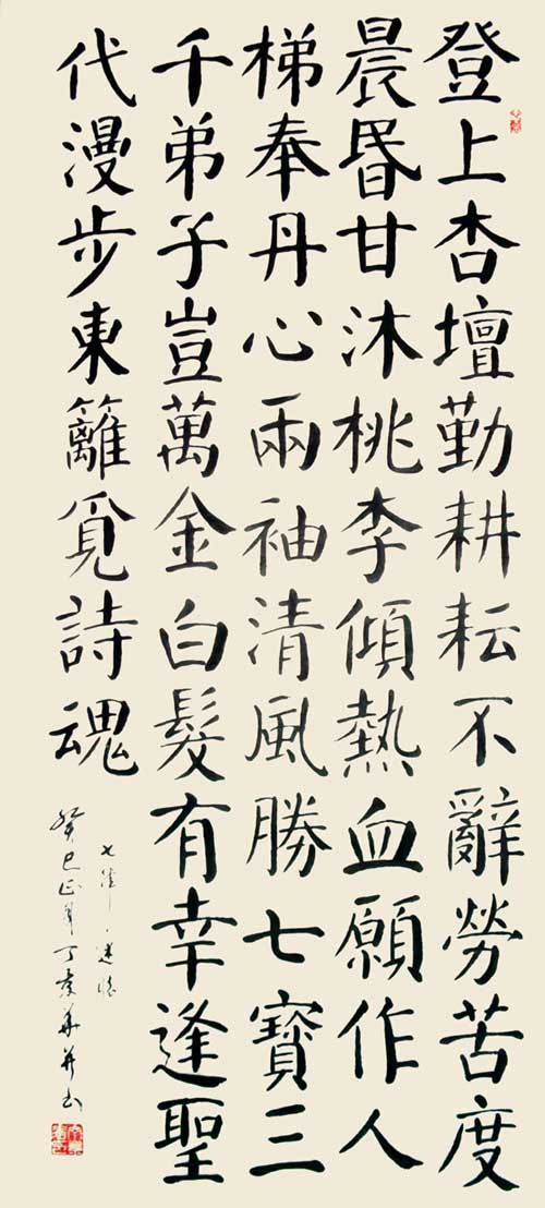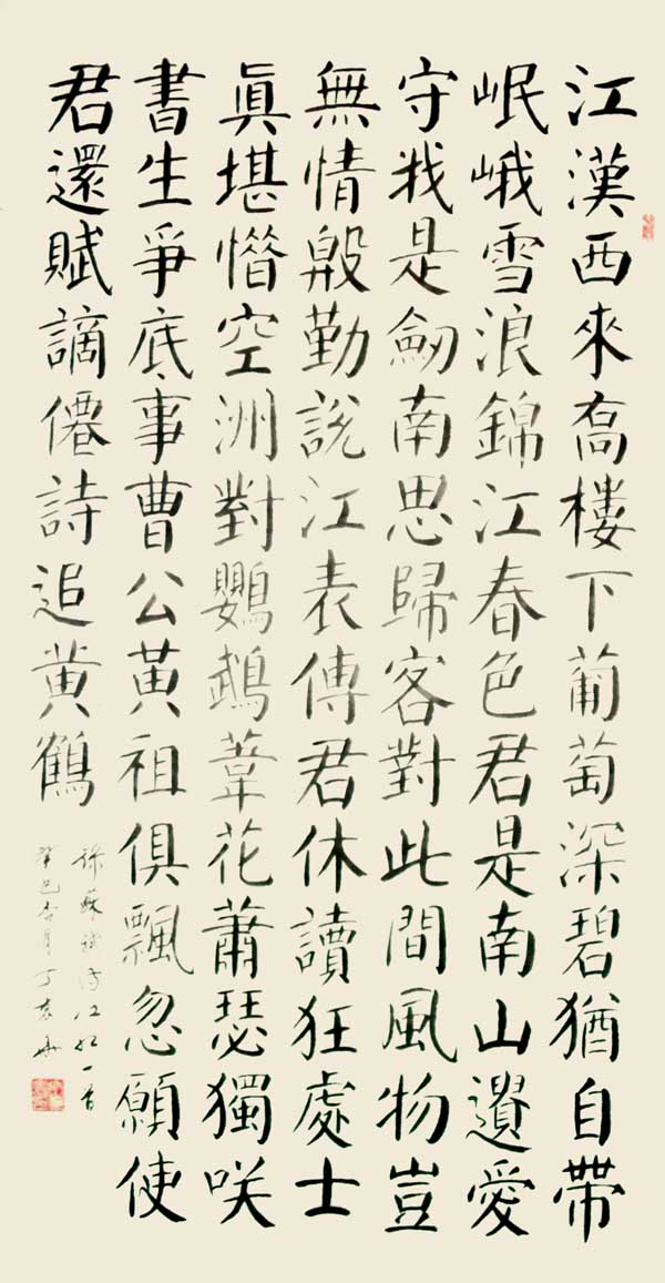 丁景华,男,1940年11月出生,江苏省扬中市人,大学学历,从事中学教育教学工作35年余,幼受庭训,重视并喜爱书法,工作后,仍抓住余暇,不辍临池。60多年来,注重传统,绍于古人,多方涉猎,增益自我,逐步形成清朗俊逸,舒和雅韵的书风。