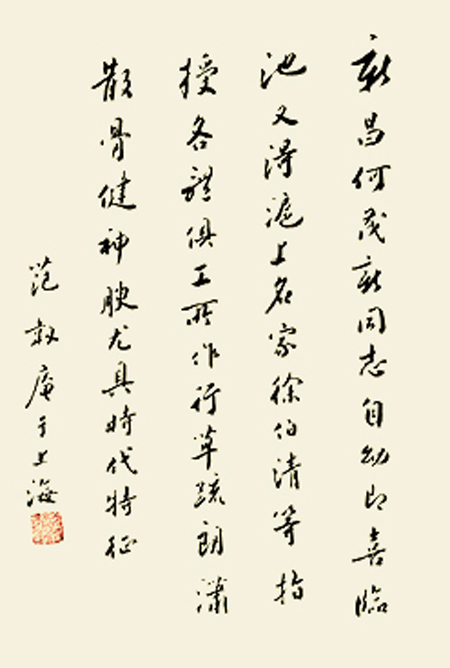 何茂新,男,1945年生,号天姥越人,鹅池点石,浙江新昌人。杭大毕业,幼喜书画,各体俱工,善行草、隶、榜,尤精小楷,深得徐伯清、范韧庵、周沧米、单眉月,盛牧夫、娄世棠指教,多次进国展获奖,入中国榜协、浙江书协、温州美协等。