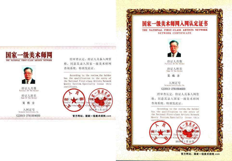 吴传方,男,1927年1月生,江苏丹阳市人,自幼受家庭影响,酷爱书画,对书法的技艺研究较重视,对书画事业的发展也关心。1985年协助建江宁县文联为书协会员;1992年组建金陵老年大学江宁分校任常务副校长;1998年又组建南京市江宁区老年书画联谊会任会长。并任江苏省老年书画会理事和创作研究员。2009年被中国传统艺术鉴定评估委员会聘为理事委员,全国人事资质资格考核办公室评定为国家一级书法家。2010年6月中国传统文化交流协会聘为常务副会长;2010年10月中国文学艺术工作者联合会(中国艺联)主席团增补为副主席。2011年6月经国家级文学人才认证管理办公室审核颁发给国家级文艺专业人才证书。2013年9月中国国家专业人才协会增补为中国国家专业人才协会副会长。同年10月国际职业人才联合会授予名誉主席。2013年12月经全国人事资质资格考核办公室审议评定为国家一级书法师。