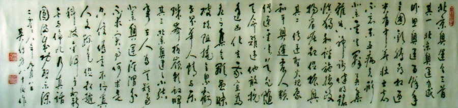 为促使书画事业的发展和提高,退休后,坚持天天临池,以百家为师,书艺有所提高。曾参加首届中国老年书画展,中华老年书画大赛和首届全国老年大学书画大奖赛,均得到奖誉。在书法研究实践中,总结出书法之路“五八”诀。1995年和2006年举办过两次书法个展,均得省、市文联、老年大学、老年书画会的领导和专家们的赞赏和技艺的肯定。
