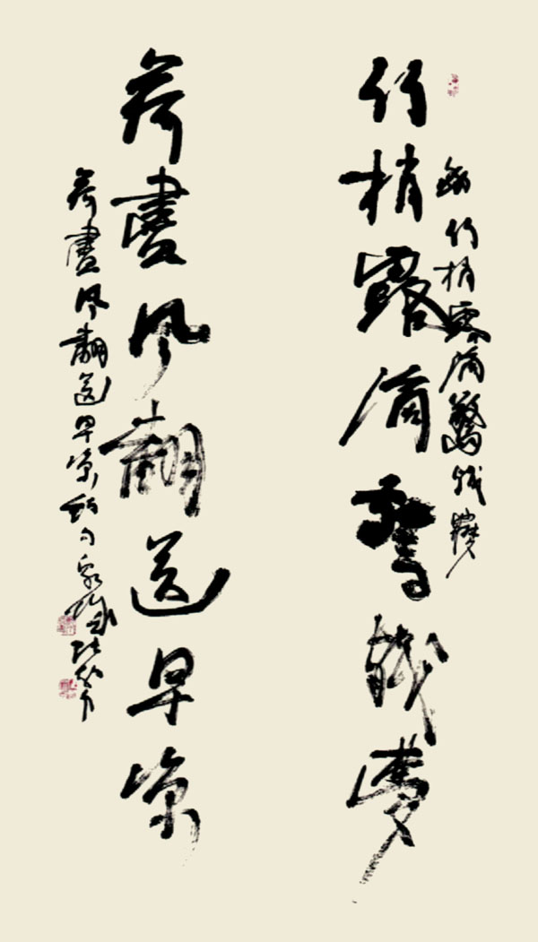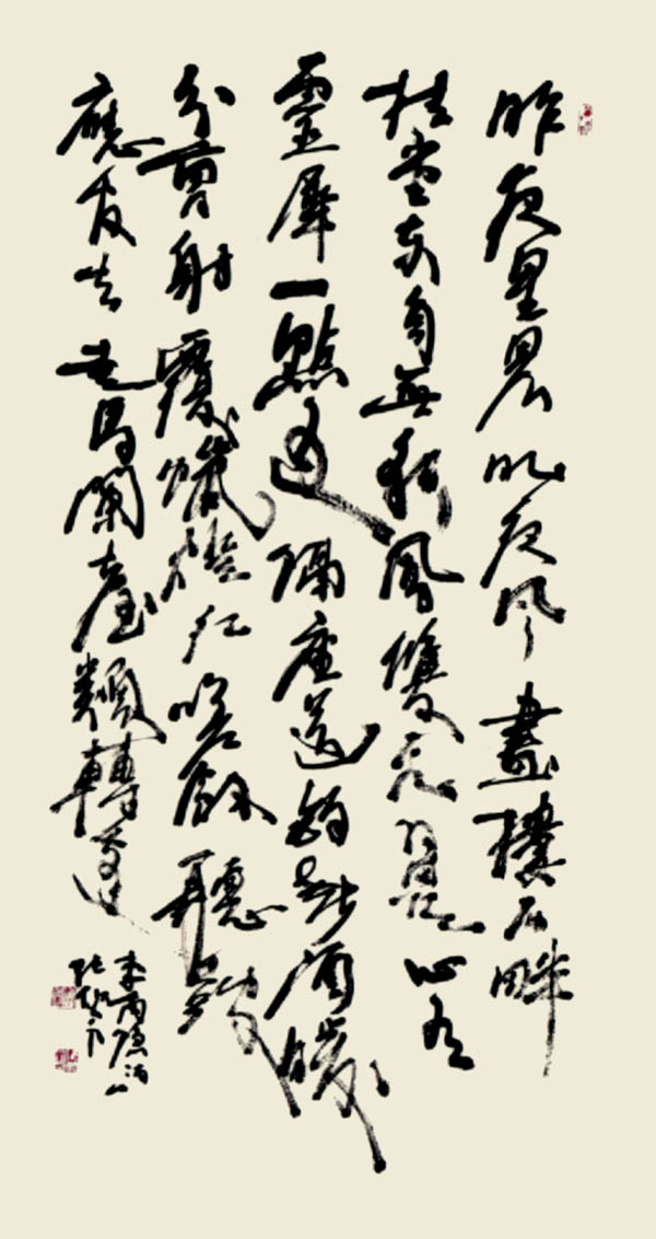 艺术追求:在传统基础上大胆创新,力争使书法作品尽善尽美。正如孙过庭书谱所说:“观悬针垂露之异,奔雷坠石之奇,鸿飞兽骇之姿,鸾舞蛇惊之态,绝岸颓峰之势,临危据槁之形,或重若崩云,或轻如蝉翼,导之则泉注,顿之则山安。纤纤乎似初月之出天涯,落落乎犹众星之列河汉。同自然之妙,有菲力运之能成信,可谓智巧兼优,心手双畅”之境界。