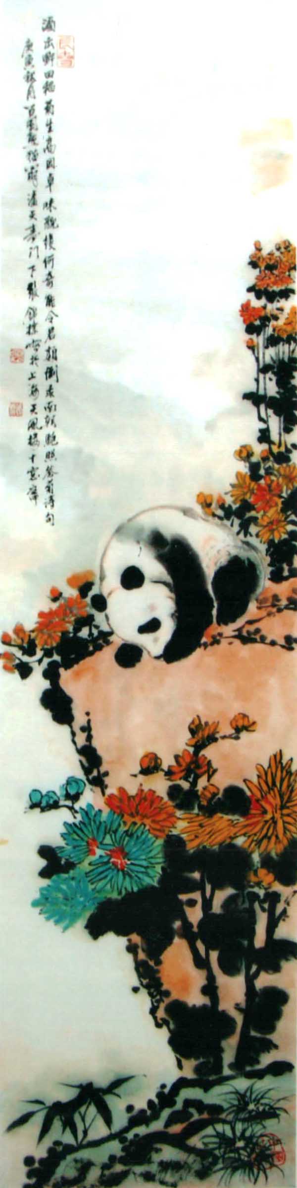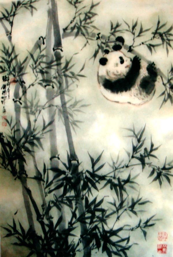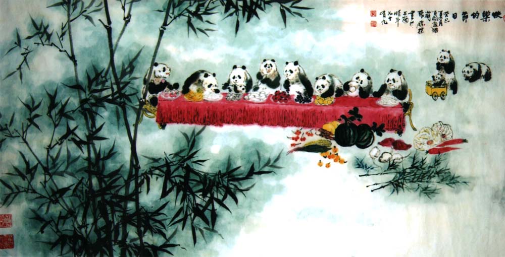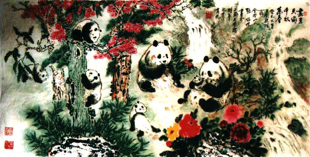 《熊猫图》共8幅,由国家邮政总局制成“当代中华文化名家专题邮票”,全国发行,并被联合国和国家博物馆收藏。1997年创作的《迎香港回归1997只熊猫长卷》(21650×69cm),2007年获大世界基尼斯之最纪录。从事熊猫画创作已有四十余年,其熊猫画作,天趣盎然,生机勃勃,笔墨酣畅淋漓,在画坛上独树一帜,被公认为“画熊猫的国手”。