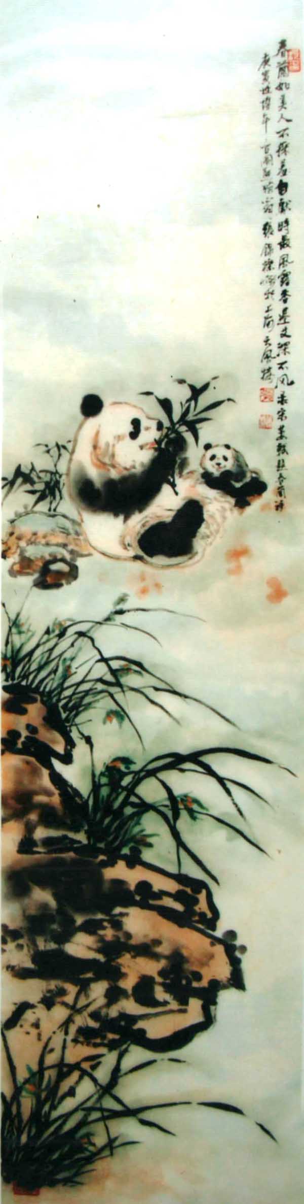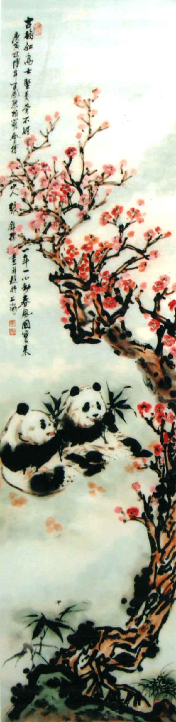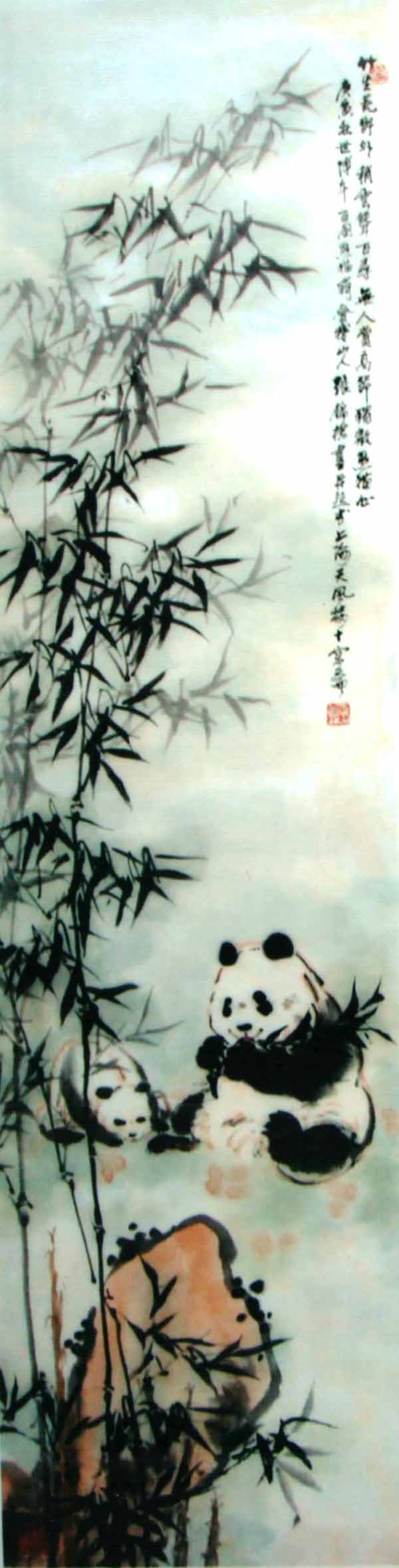 《熊猫图》共8幅,由国家邮政总局制成“当代中华文化名家专题邮票”,全国发行,并被联合国和国家博物馆收藏。1997年创作的《迎香港回归1997只熊猫长卷》(21650×69cm),2007年获大世界基尼斯之最纪录。从事熊猫画创作已有四十余年,其熊猫画作,天趣盎然,生机勃勃,笔墨酣畅淋漓,在画坛上独树一帜,被公认为“画熊猫的国手”。