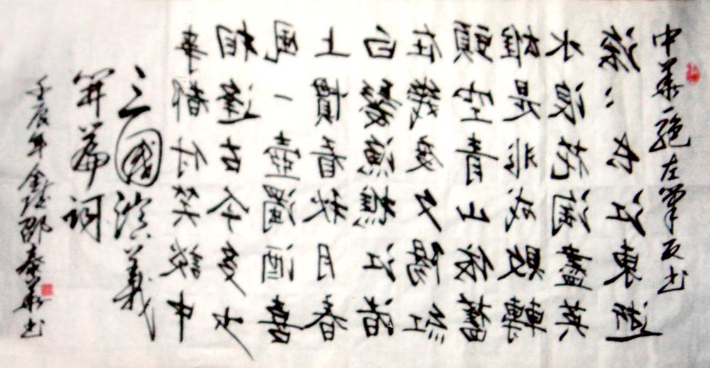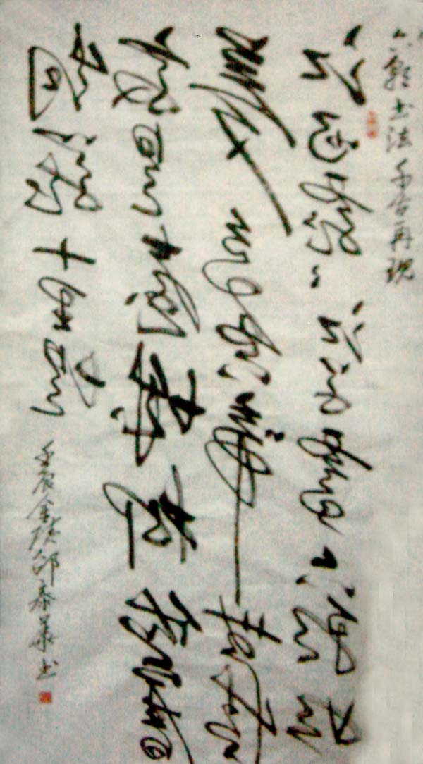 邵泰华,1955年出生于南京,当今从事左笔反书创作的书法家。幼年时,跟随黄埔军校毕业的父亲学习书法,培养了兴趣,打下了基础,以后数十年间,不管生活的颠沛流离,风风雨雨,若练书法而不懈,有时用水笔在广场的地面上书写,旁若无人,专心致地,特别是对“笔体”书法情有独钟,对“左笔反书”亦渐入佳境,功夫不负有心人,天长日久,终于成果在望: