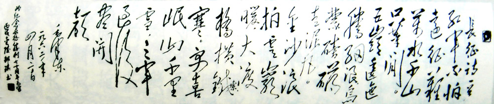 2007年,被评为“全国百名风云人物”,应邀赴台湾考察。同年十月一日,应邀去北京参加“建国58周年国庆座谈会”和“中华脊梁——全国百位杰出人物”表彰大会,在人民大会堂受到国家领导人的亲切接见。会上,他当场献出巨幅“毛体”书法:《沁园春——雪》和《长征》,作为建国58周年的重礼。
